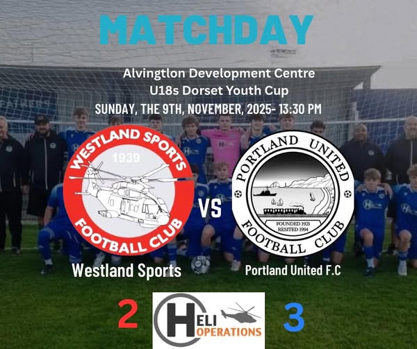 Portland United’s U18s booked their place in the next round of the Dorset County FA Youth Cup with a determined 3–2 victory away at Westland Sports, edging a tight and hard-fought contest that swung throughout the afternoon.